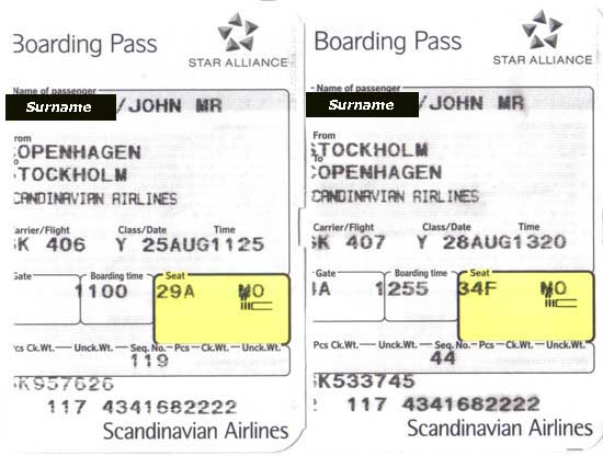 Aeroplane boarding passes used by one of 213DX/2 Team.