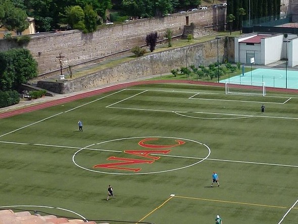Closer view of football field. Notice the high security wall seperating the City of Rome with the North American College which is an extraterritorial Zone of the Vatican City State.