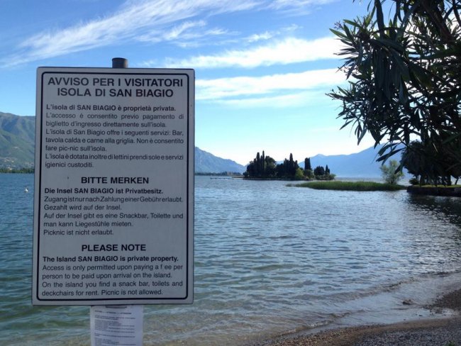 island Information sign with San Biagio island in view. Pic received live from the team on day of activity.
