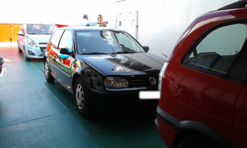 17. Car on the ferry on the way back to Fyn island, EU-172, FY-001.