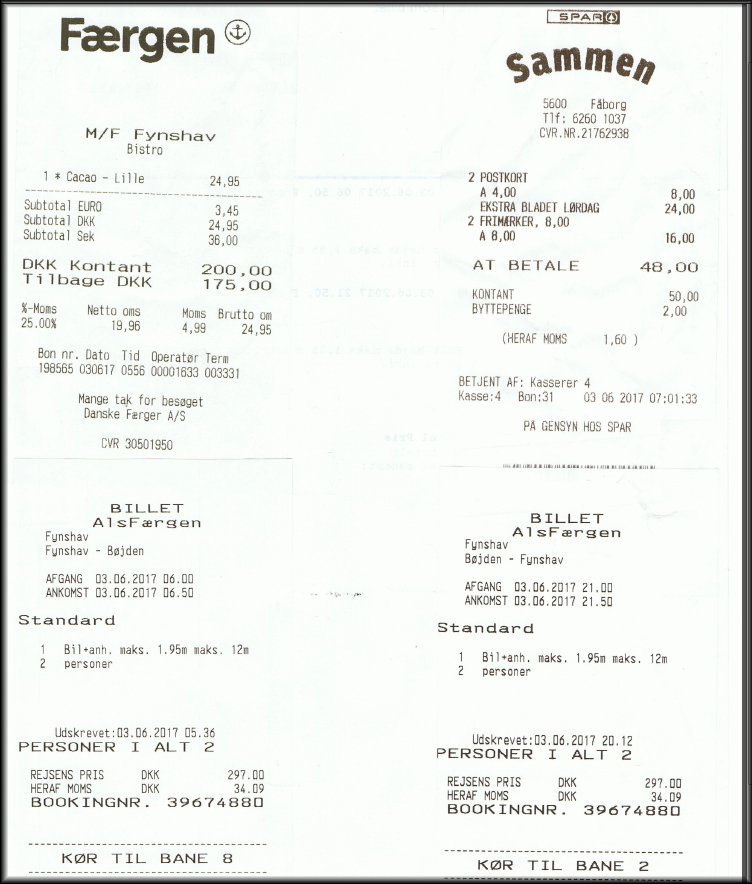 12. Ferry tickets, supermarket and cafe receipts.