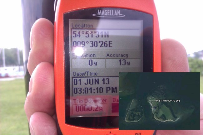 GPS info in GoogleEarth. Picture send live from the island via MMS.